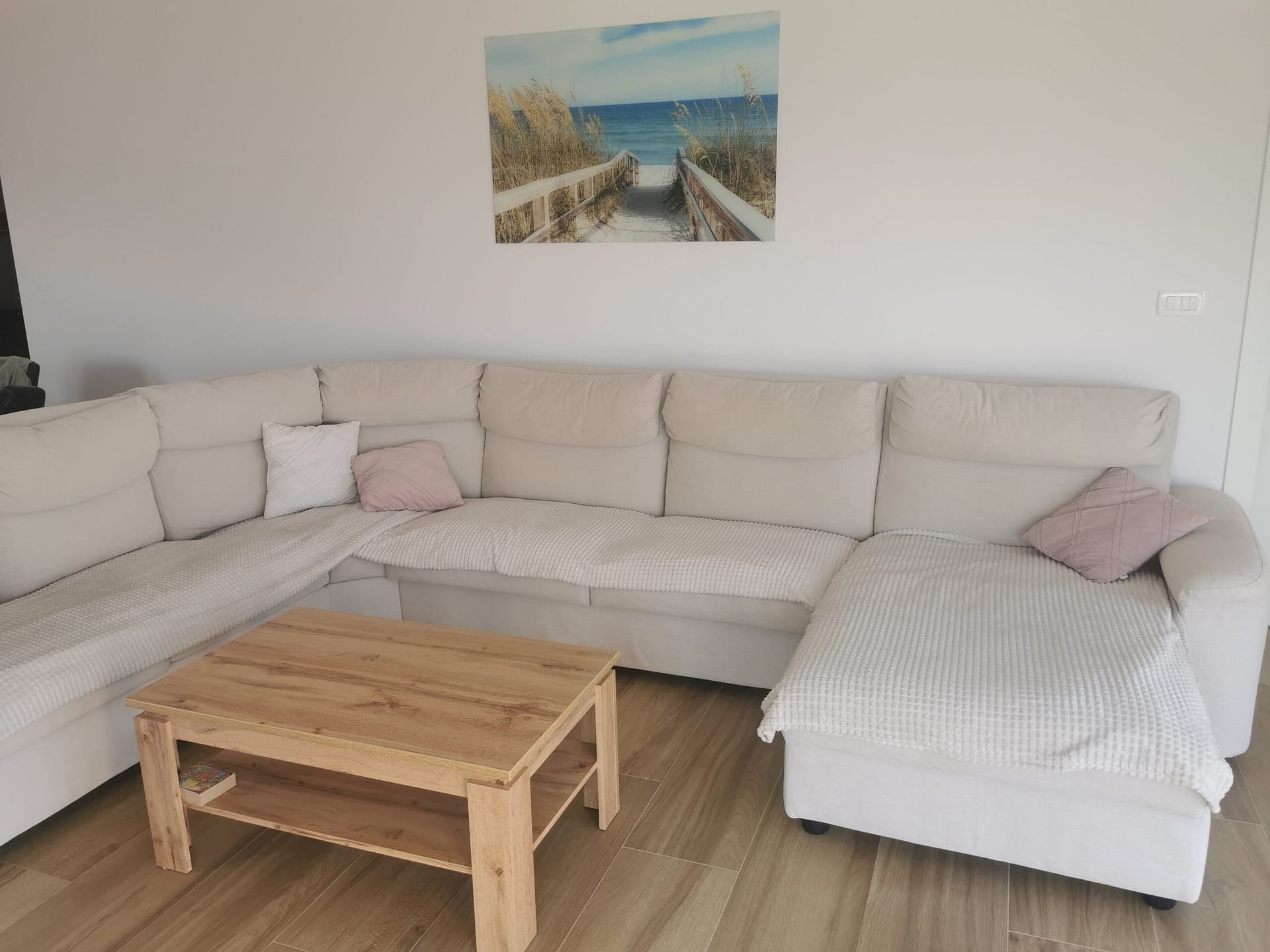 Dnevni boravak sadrži blagovaonicu, udobana kutna garnitura na razvlačenje i prostor za sjedenje, savršen za opuštanje.